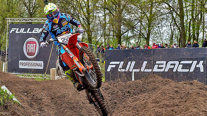 Red Bull KTM Factory Racing’s Glenn Coldenhoff only lives 20 minutes from Valkenswaard track making this truly a home GP. In today’s qualifying Coldenhoff rode well from 9th on lap one, he worked his way up to 7th before a mistake by Bobryshev took them both down. Coldenhoff qualified 10th but looks to place higher in the points counting races of Sunday. The Dutch rider said in the press conference, “It’s always great to race here, I’m feeling really good this year and I must say that I feel much better than the years before. My starts are very good lately and I’m really looking forward to tomorrow, I’m really motivated!