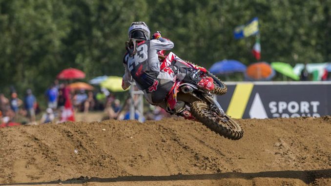 The start of race one was not ideal for Gajser, who found himself in 14th place after a few turns but was able to quickly make it back into the top-ten and up to seventh. From then on, the 21-year-old did not manage to make up some more ground to the podium position, but a move on Nagl on the last lap helped him claim sixth at the finish line. Waters’ performance was compromised at the very beginning as he went down at turn one after a coming together with a rival. The 28-year-old Australian managed to get back on the bike and with a 20th final position, he claimed his first point of the year in what was his maiden Sunday moto of the 2018 edition of MXGP.