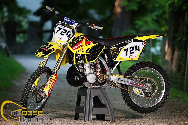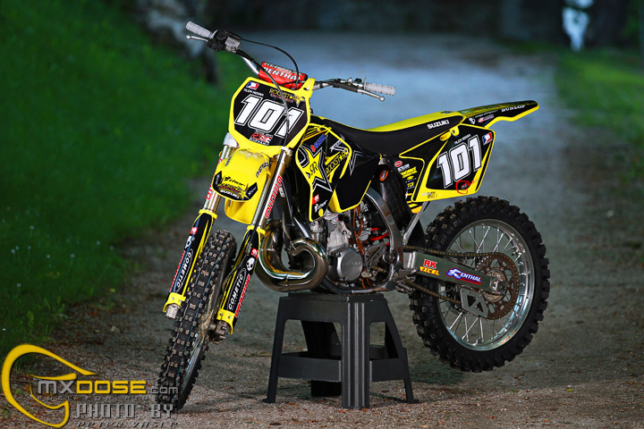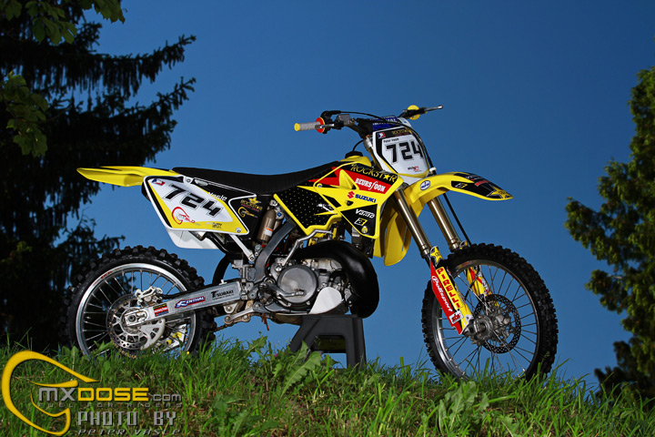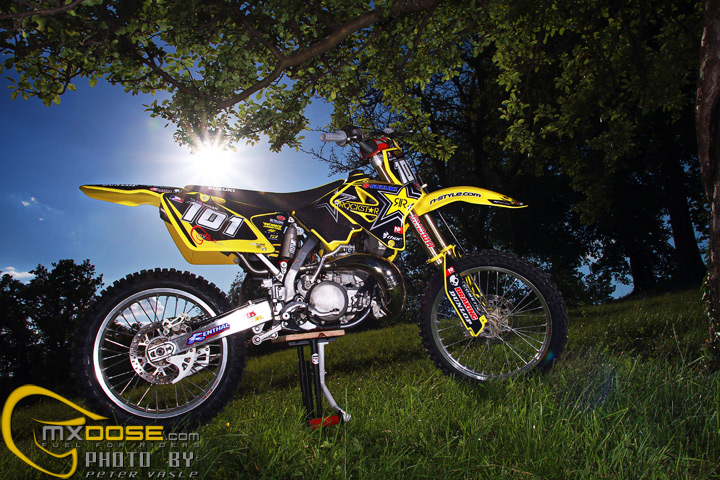 Two 2 stroke machines and one hot model, what else is needed to make a perfect photoshoot. We had all of these, so we made a nice photo session with our beautiful model and makeup artist Marina and with two just rebuild Suzuki’s RM250 2 Stroke model year (#101) 2006 and (#724) 2007.